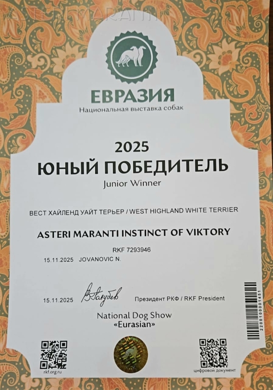 CW, ЮСАС, ЮКЧК, Юный Чемпион РКФ, Лучший Юниор кобель!!!